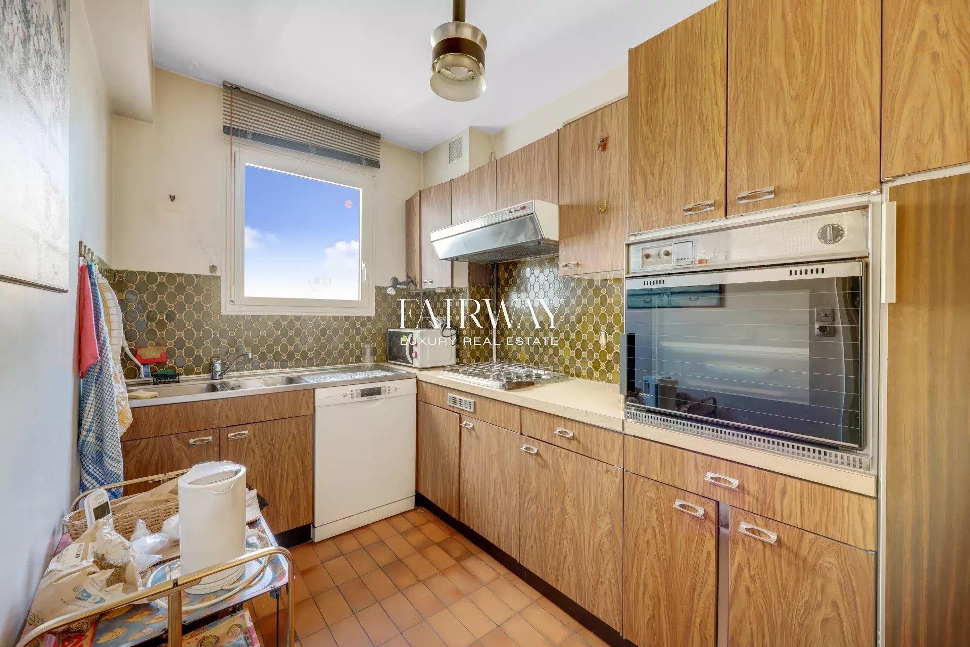 Located on the 6ᵉ floor by elevator, this 107.5 sq.m. family apartment, to be completely renovated, features a private terrace of over 100 sq.m., on one level and unoverlooked, offering unobstructed views over the rooftops of the 14ᵉ arrondissement.