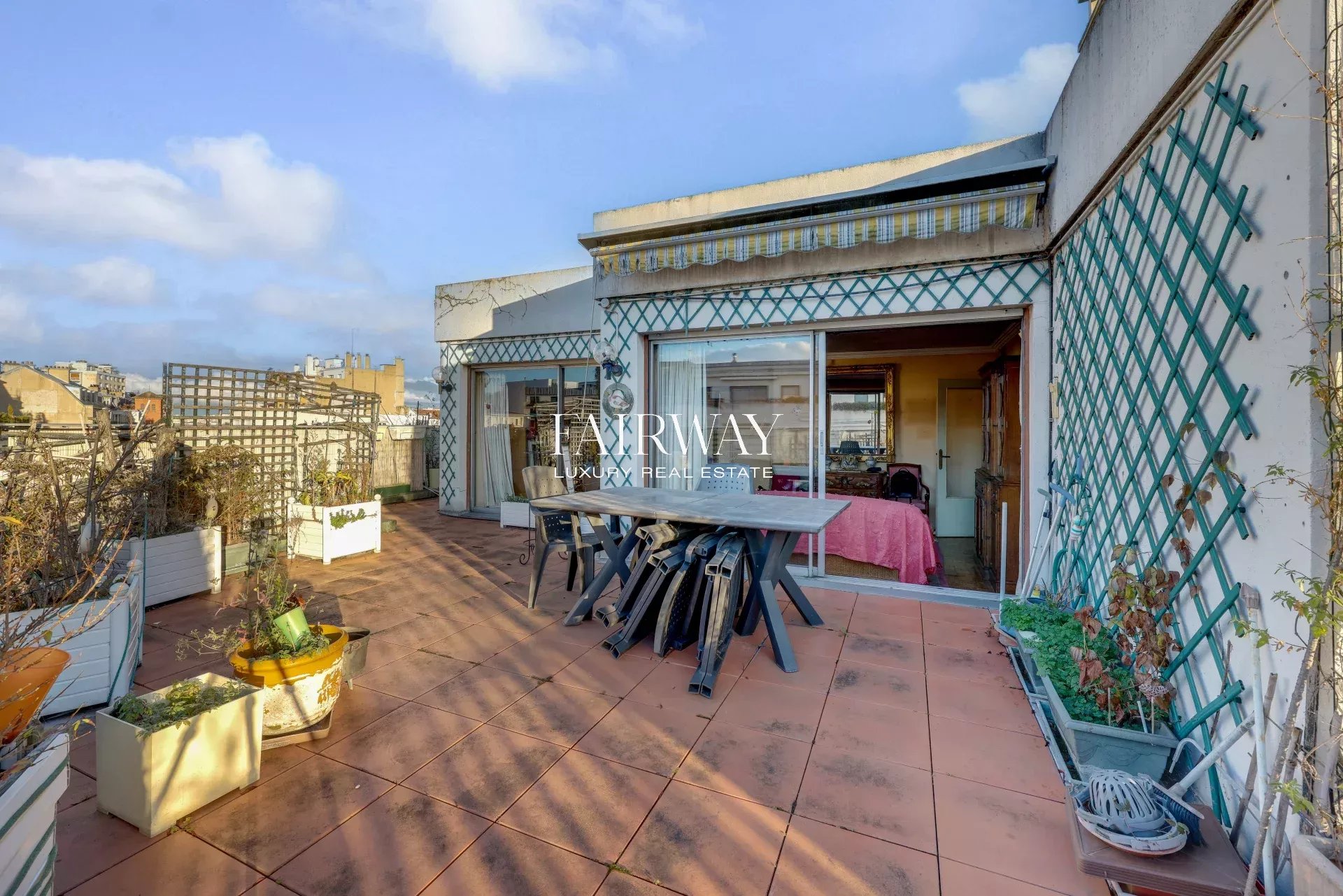 Fairway Luxury Real Estate offers this top-floor apartment with terrace in a 1970s building on rue du Père Corentin, a stone's throw from Alésia and Porte d'Orléans.